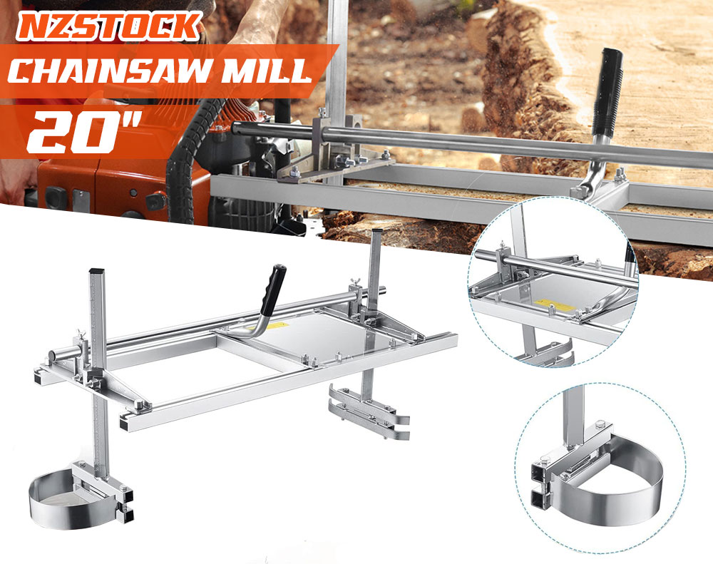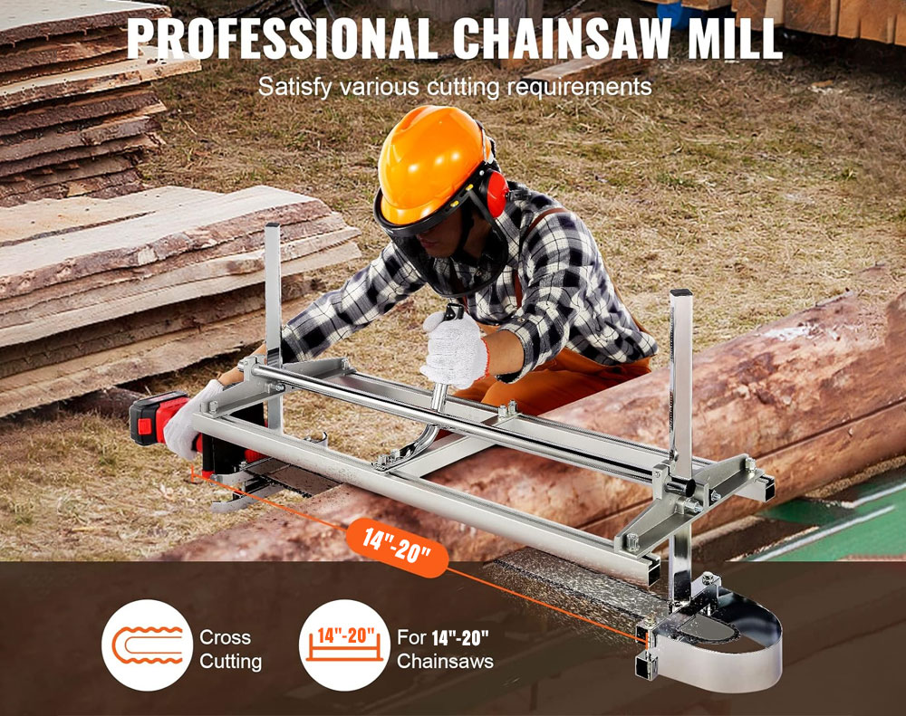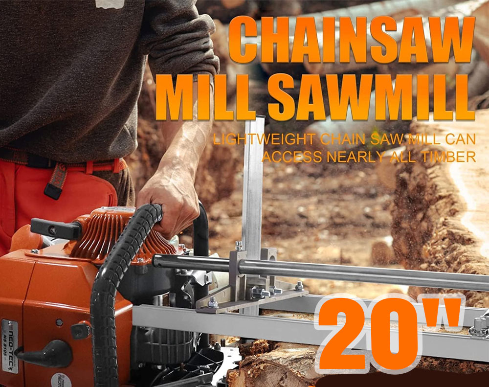 20 Inch Portable Chainsaw Mill, Adjustable Aluminum and Steel Planking Milling Bar for 14"-20" Chainsaw Bars, Professional Lumber Cutting Sawmill for Woodworkers and Builders