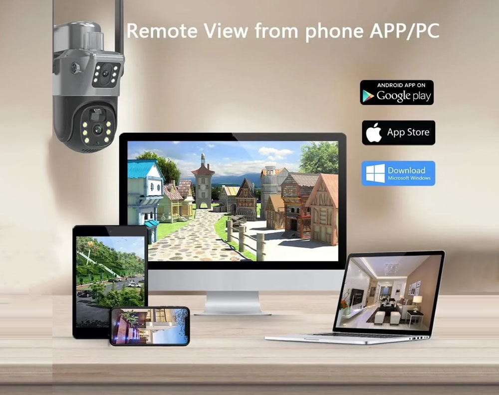 * APP: V380pro available for Android, iPhone, and PC