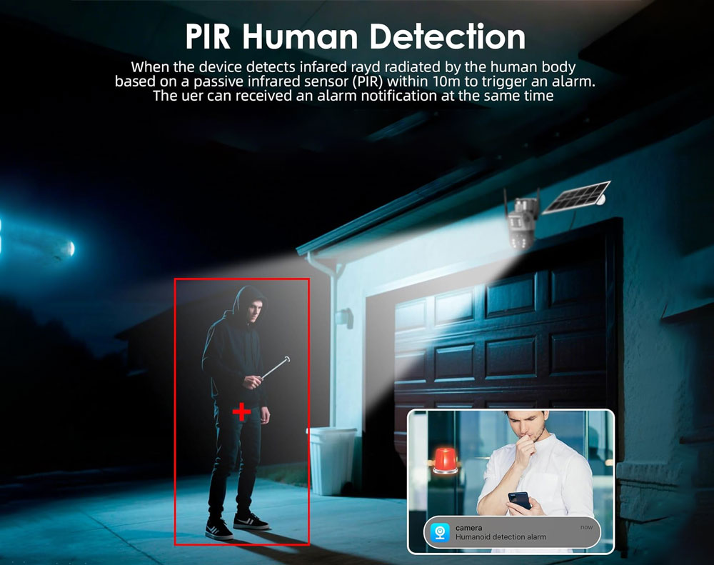 * PIR+AI Humanoid Detection for accurate alerts