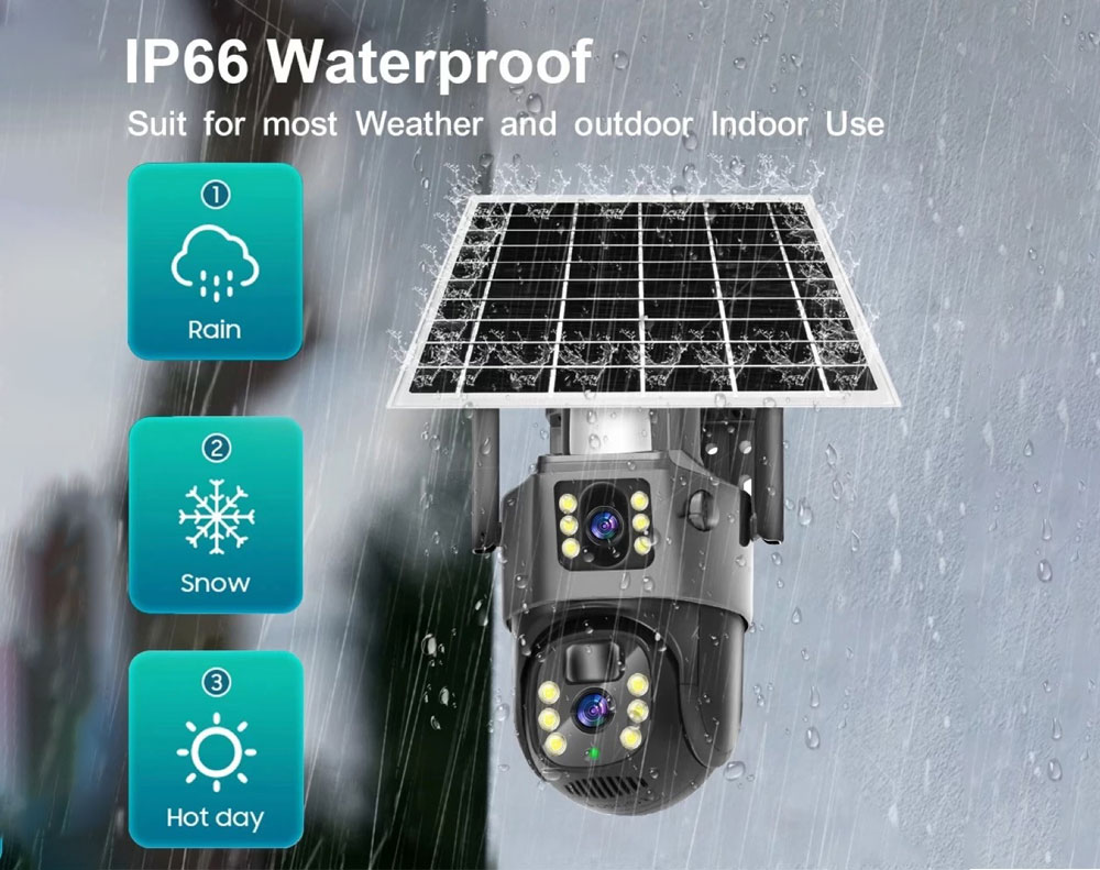 6MP Dual Lens Solar WiFi Security Camera, 4K Ultra HD Resolution, IP66 Outdoor PTZ Camera with 10000mAh Battery, PIR+AI Humanoid Detection, Two-Way Audio, and Color Night Vision Support 4G Sim