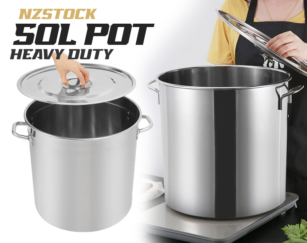 50 Litre Heavy Duty Stainless Steel Stock Pot with Lid – 40cm Diameter Professional Cooking Pot for Induction, Gas, and Electric Cooktops