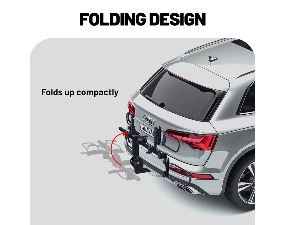 Increase convenience when transporting up to two e-bikes or mountain bikes. This heavy-duty rack features a robust, rust-resistant construction with a 70kg on-road capacity. Easily access your trunk with the foot pedal tilt design. Fully foldable for minimal storage and includes a built-in lock and bonus strap for optimal security.