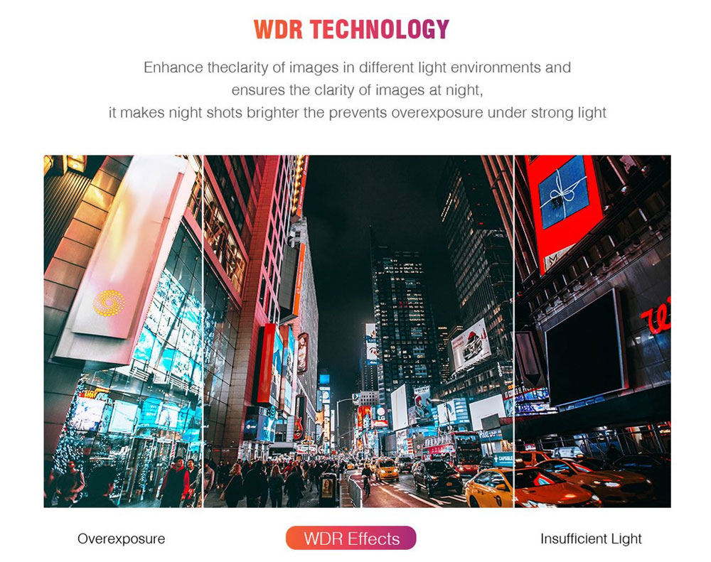 * WDR (Wide Dynamic Range) for clear footage