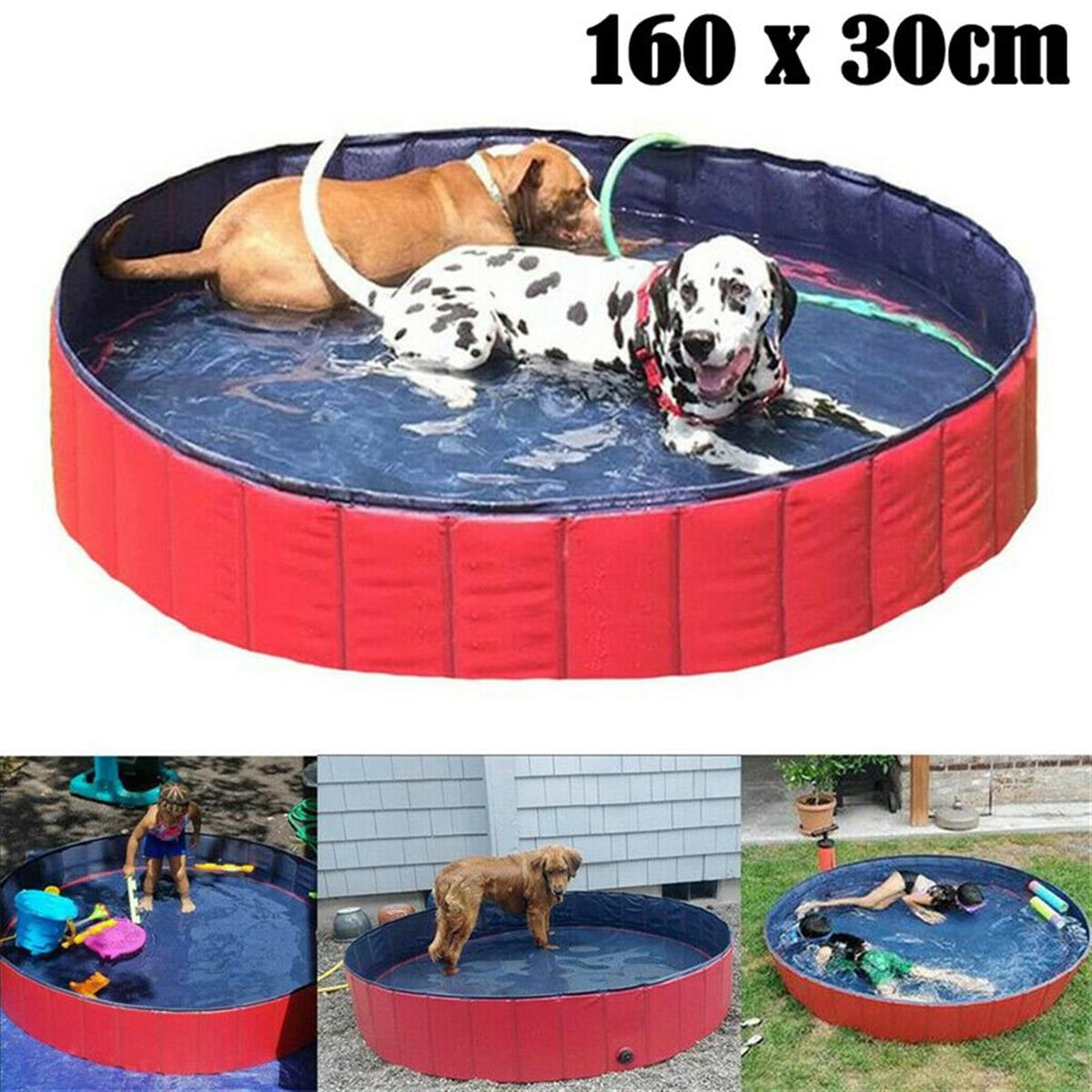 Foldable Dog Swimming Pool PVC Pet Bath Tub Collapsible Hard Plastic Kiddie Pool Outdoor for Dogs Cats Kids 160x30cm