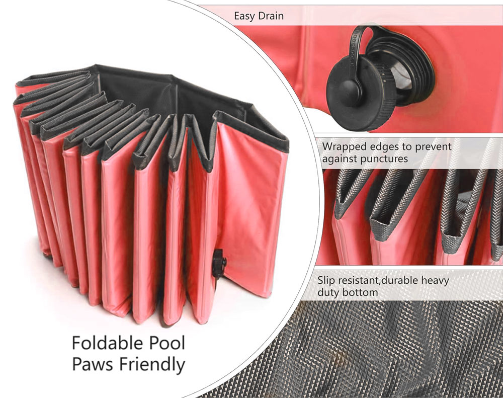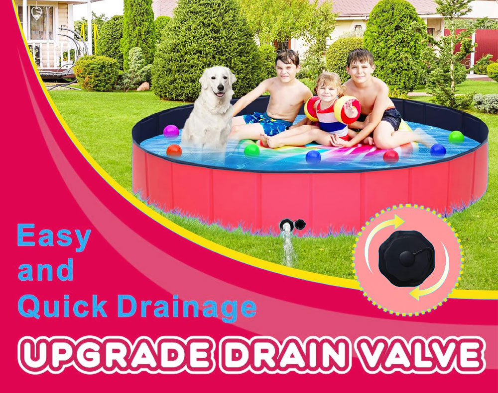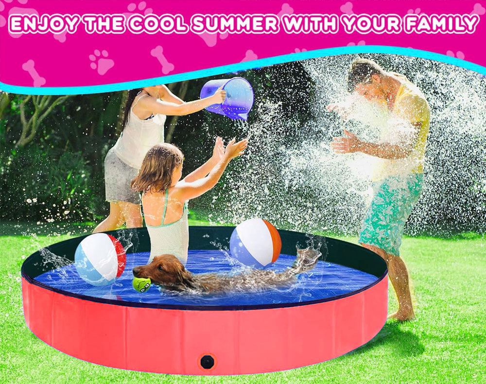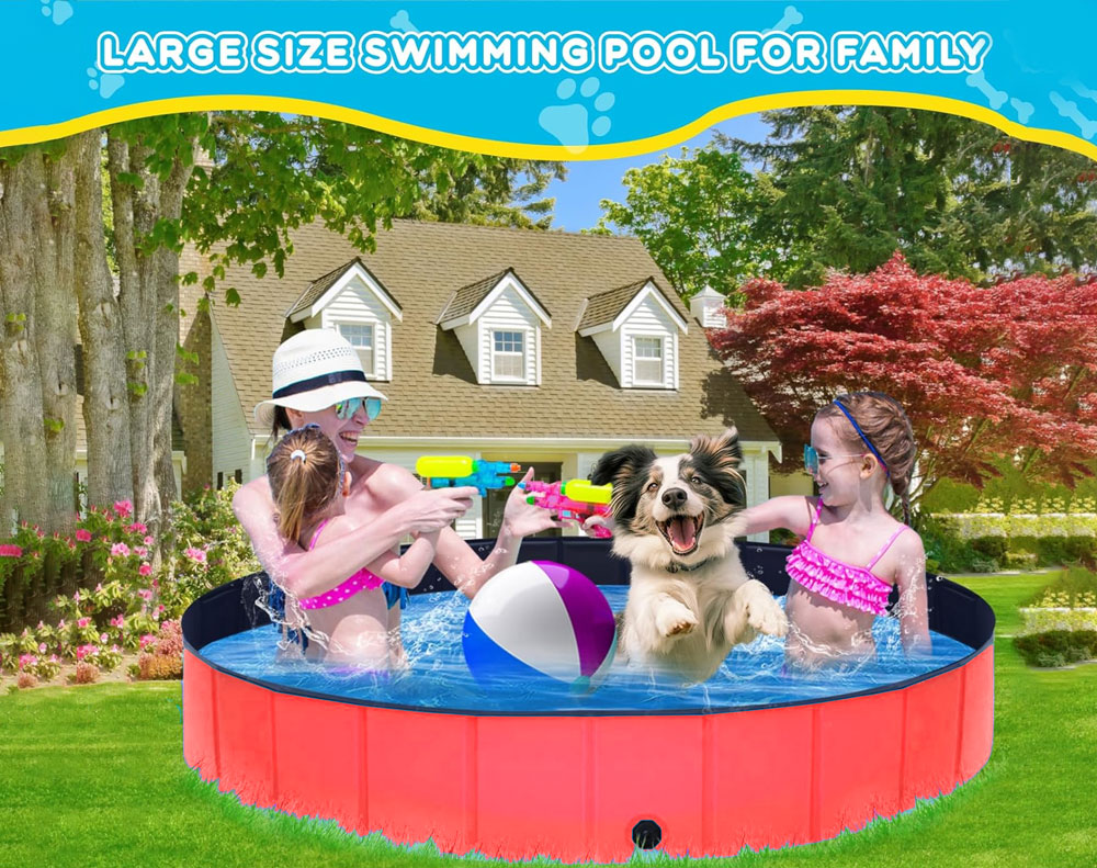 This foldable PVC dog swimming pool offers a durable, non-slip, and leakproof design for pets and kids. No inflation needed-just unfold and fill. Ideal for backyard play, pet bathing, or kids’ water fun. Easy to drain, store, and carry