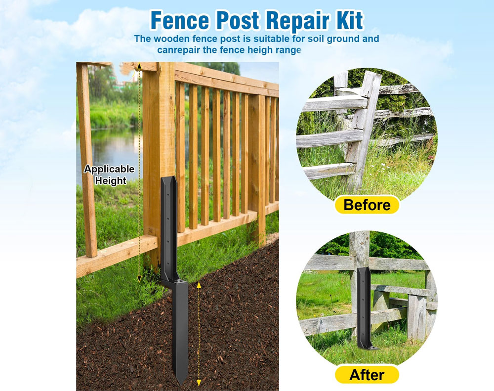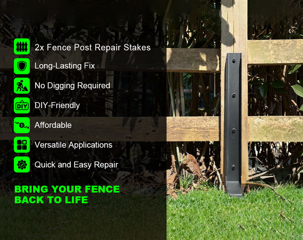 Save your leaning fence with these heavy-duty H-shaped repair stakes. Designed to reinforce swaying or damaged wooden posts, these 2.8ft steel anchors drive deep into the soil to provide immediate structural integrity. Perfect for fences ranging from 2.5ft to 8ft, they allow you to bypass existing concrete footings and secure your garden, mailbox, or pergola against high winds and wear