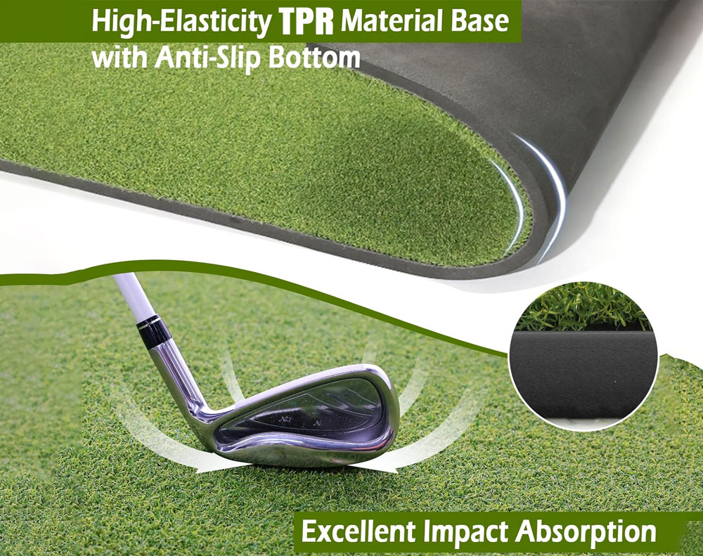 Professional Golf Hitting Mat 1.5m x 1m x 20mm Shock – Absorbing TPR Base with Realistic Synthetic Turf and Dual Tee Holes