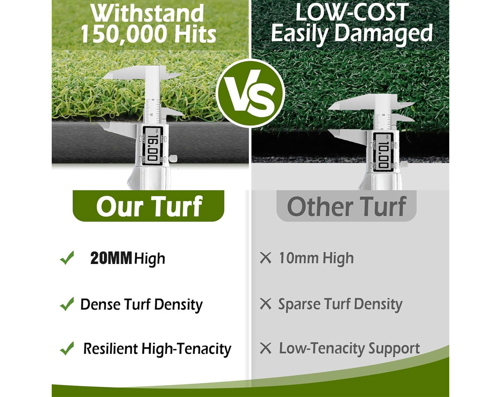 Practice like a pro with this golf driving range hitting mat designed to simulate real fairway conditions. Featuring realistic nylon turf and a 20mm shock-absorbing base, it protects wrists and elbows while delivering a true swing feel for indoor or outdoor training.