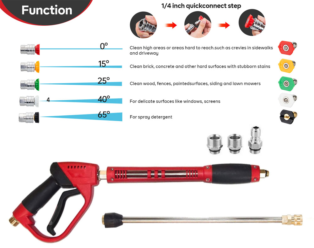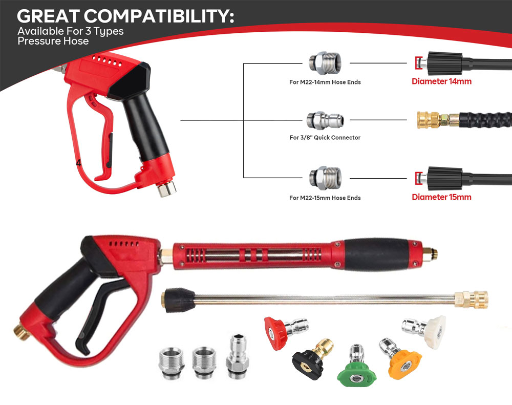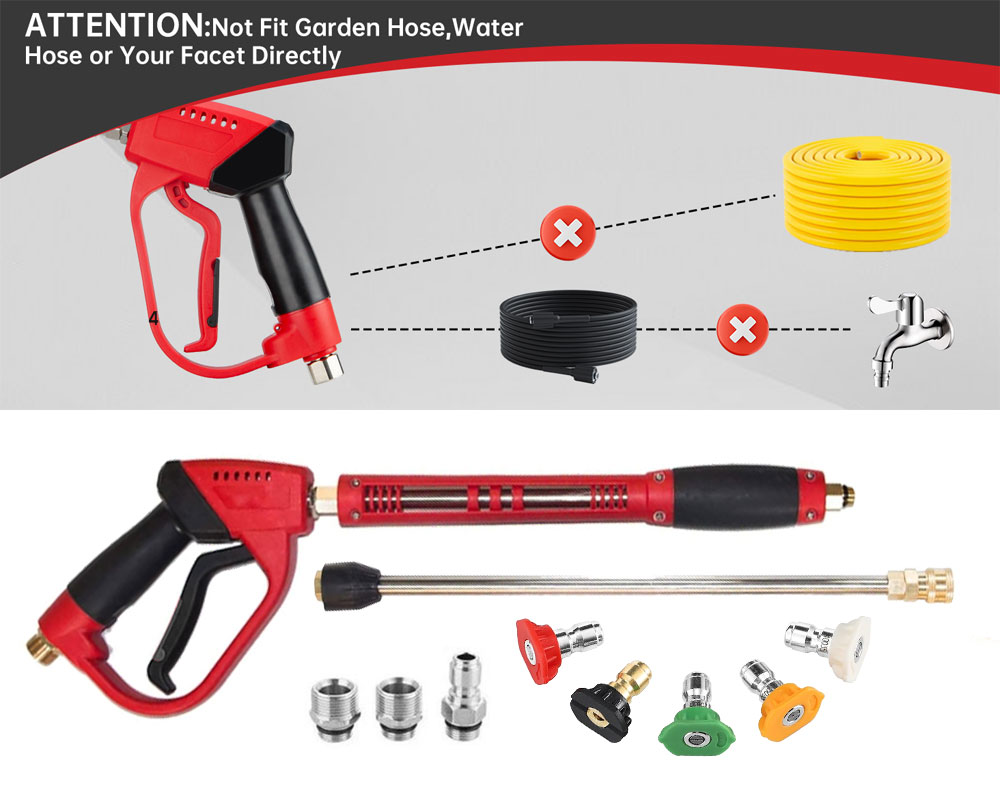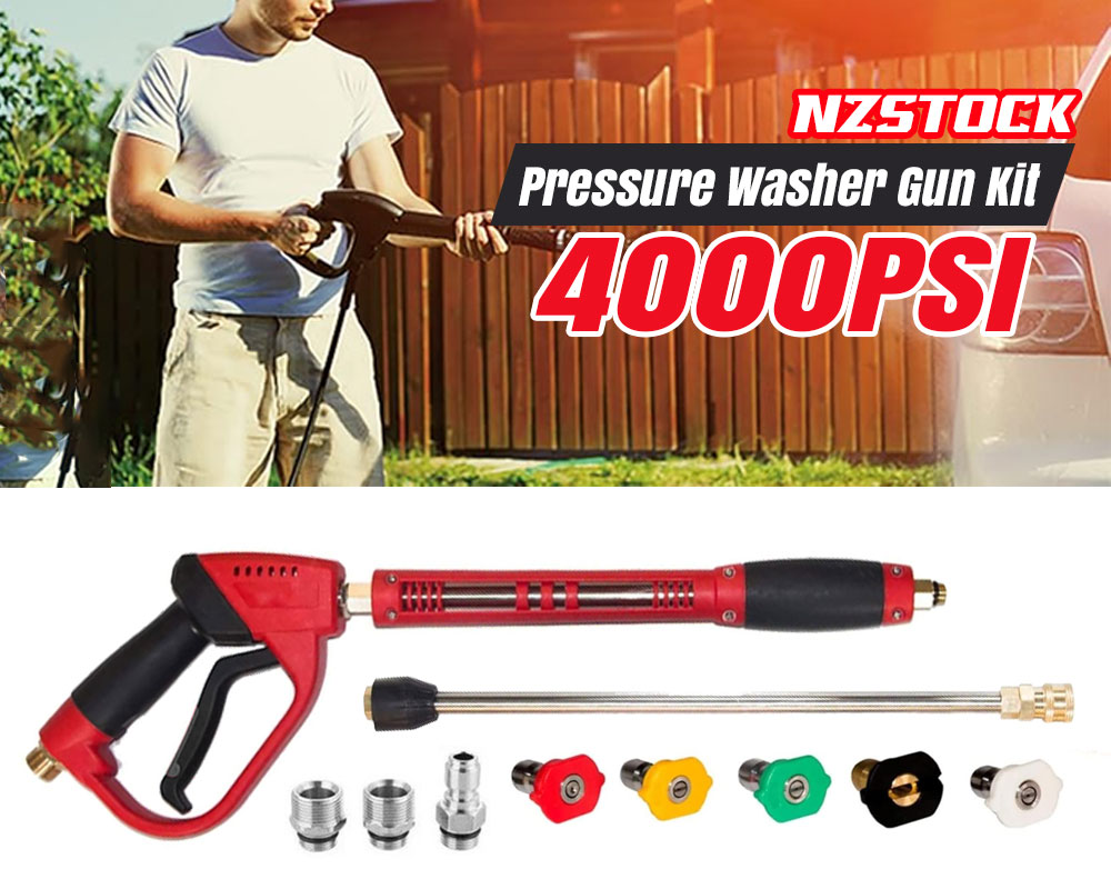 Tackle tough dirt with this 4000 PSI high pressure washer gun designed for powerful and precise cleaning. Featuring multiple extension lengths, 5 spray nozzles, and wide washer compatibility, it delivers strong water flow for cars, driveways, walls, and outdoor surfaces