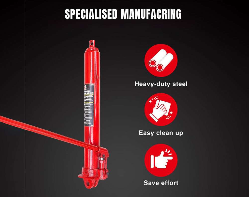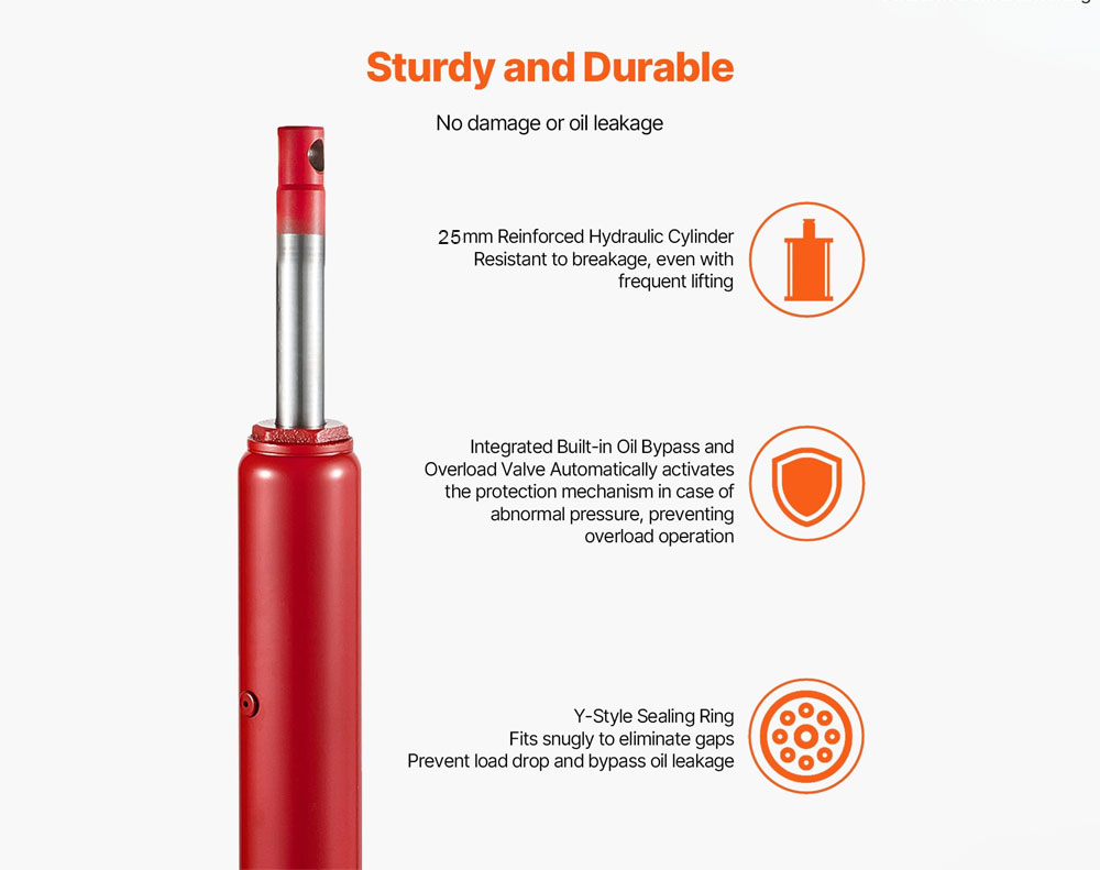 This heavy-duty 8 Ton hydraulic long ram jack is engineered as a robust replacement plunger for your shop crane, engine hoist, or dump trailer. Its all-steel construction and durable internal components ensure reliable performance with a 16,000 LBS load capacity and 520mm of smooth, powerful lift travel. Ideal for major operations or as a crucial spare part