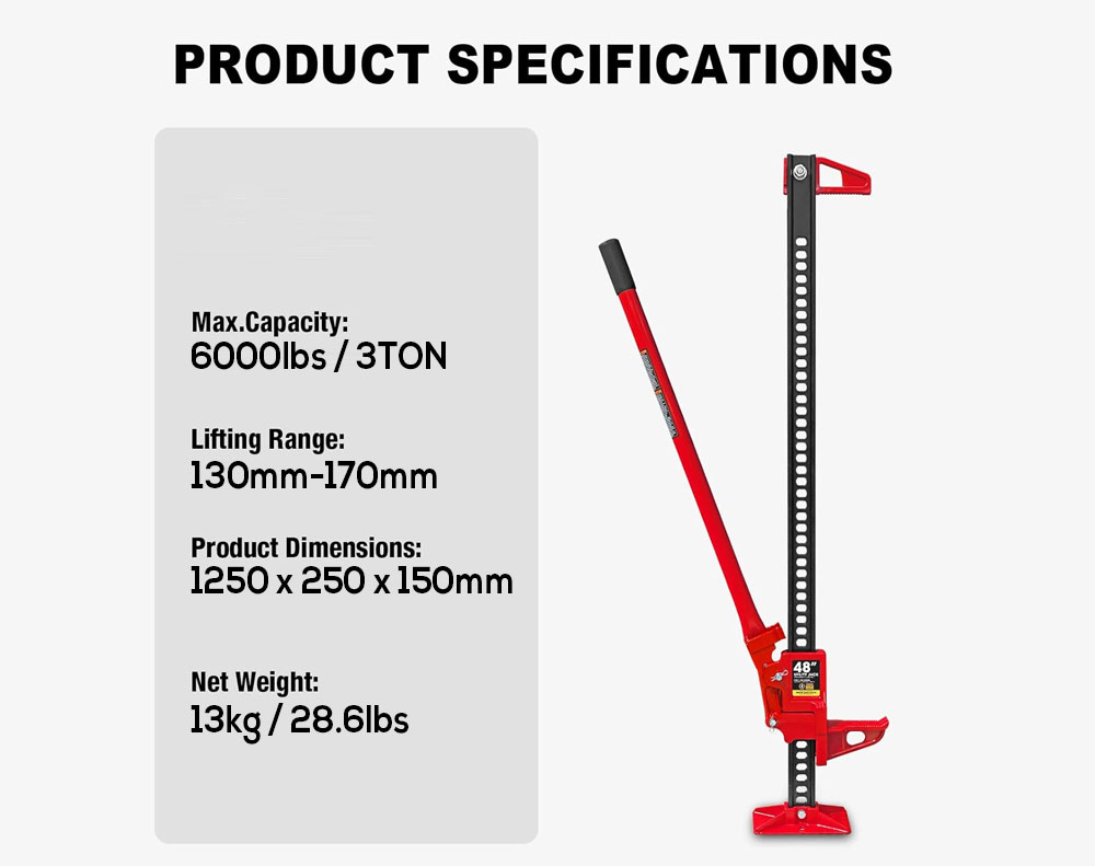 Professional 48 Inch 3 Ton Heavy Duty Farm Jack 3000kg Capacity High Lift Recovery Jack for 4×4 Off-Road Trucks Tractors and Fencing