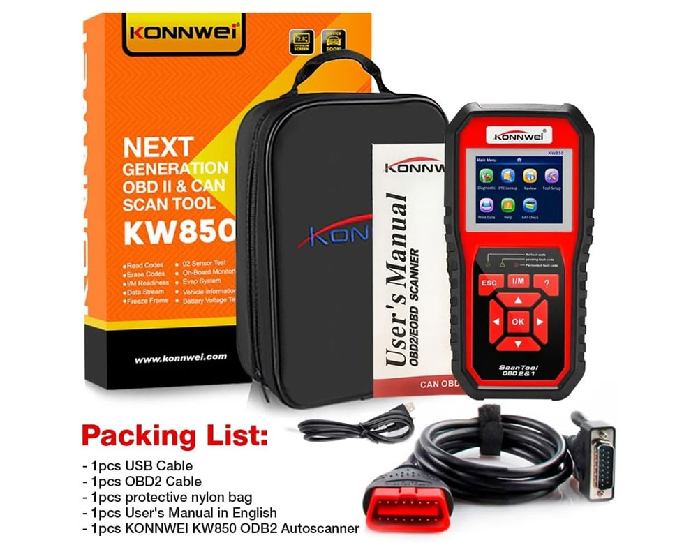 OBD2 Engine Fault Code Reader, 12V Vehicle Powered, 2.8inch TFT Display, Supports 6 Protocols (ISO9141, KWP2000, CAN, etc.), and Live Data Printing via PC