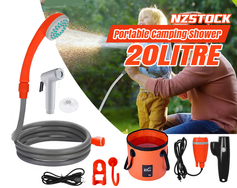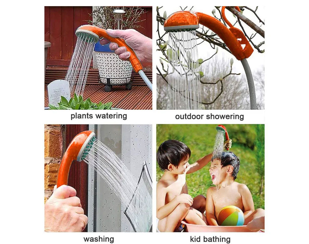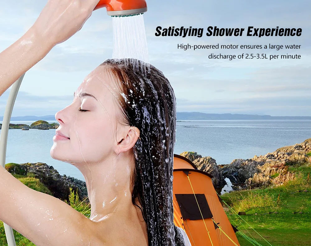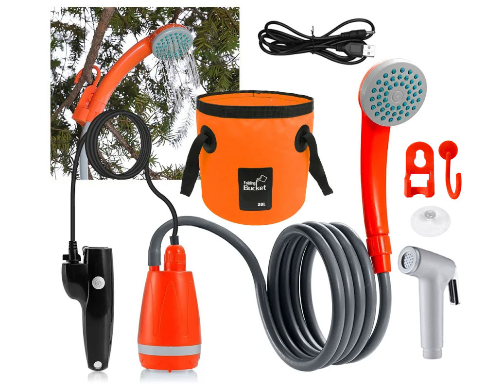 Enjoy a clean, refreshing shower anywhere with this portable camping shower kit. Featuring a USB rechargeable battery, steady water flow, and folding bucket, it’s perfect for camping, hiking, beach trips, pet washing, and emergencies with safe, efficient, and easy operation.