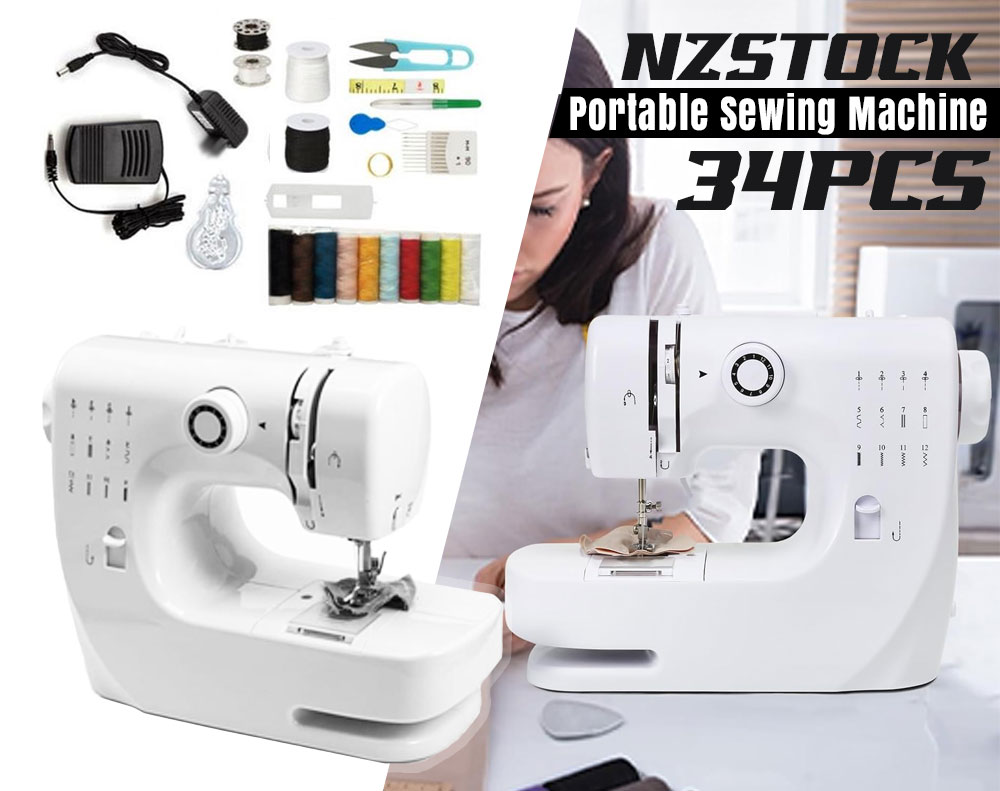 34-Piece Electric Sewing Machine Set – Portable Multi-Function Desktop Machine with 12 Built-in Stitches, Dual Speed, and Full Accessory Kit for Beginners & DIY