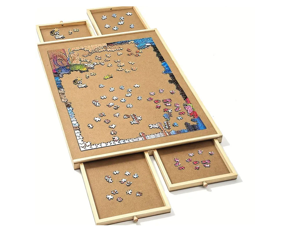 * Four Storage Drawers: Organize puzzle pieces efficiently