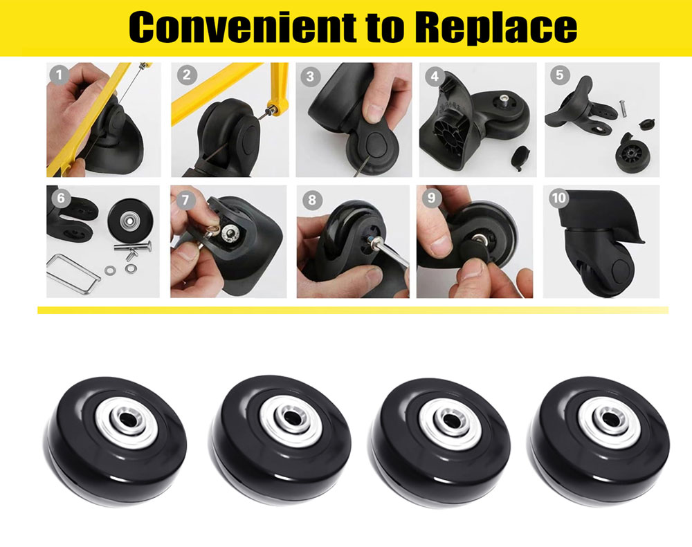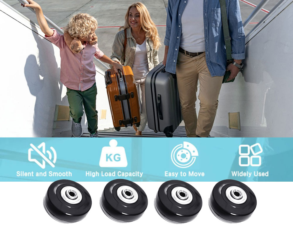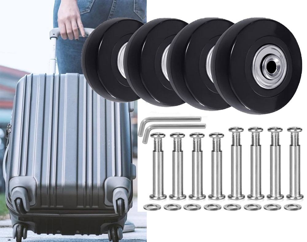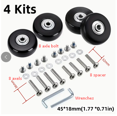Revive your favorite luggage with this 4-piece replacement wheel kit. Featuring wear-resistant rubber and stable bearings, these wheels ensure a smooth, silent roll. The kit includes multiple axle sizes (30mm/36mm) and all necessary tools for easy, universal installation, providing a perfect, long-lasting fix for worn suitcase casters