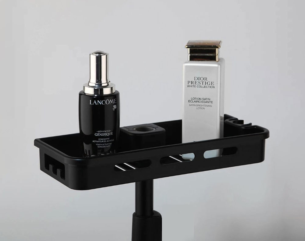 * Built-in storage shelf for toiletries