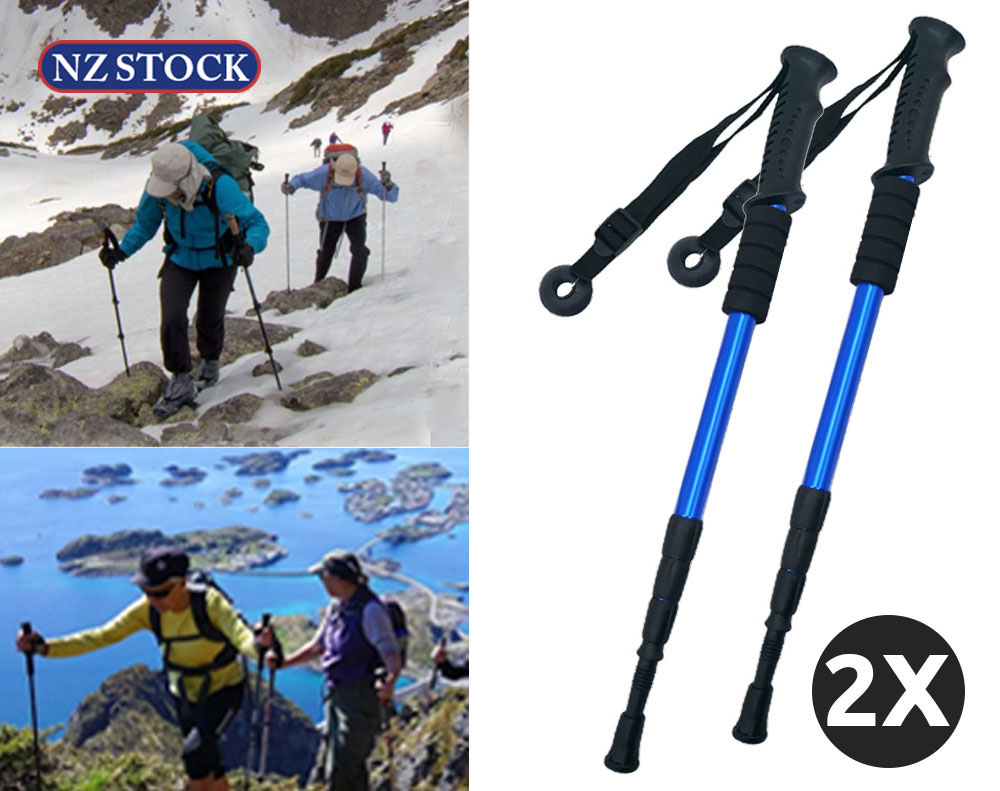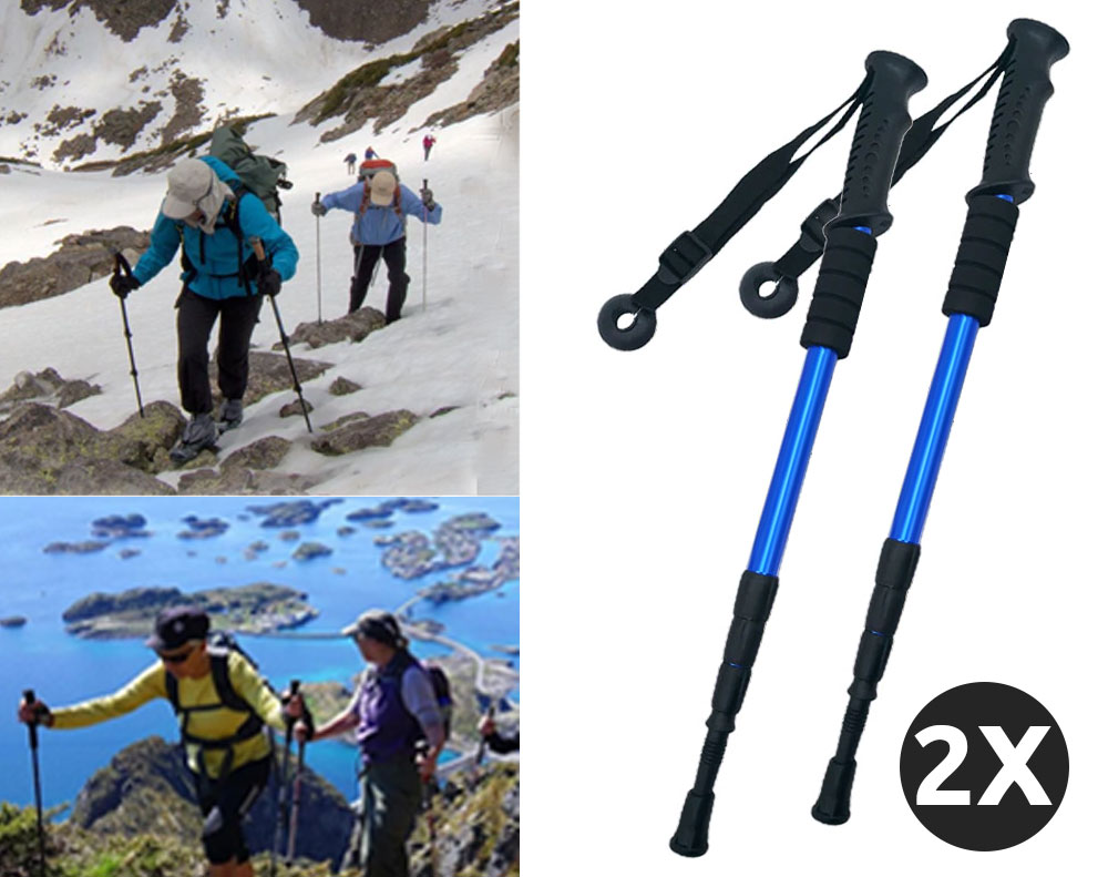 2pcs Hiking Trekking Poles Walking Stick Anti Shock Adjustable Camping Blue