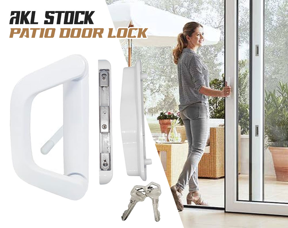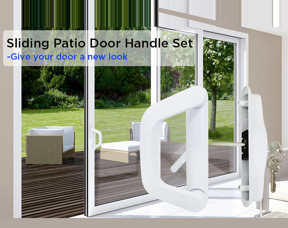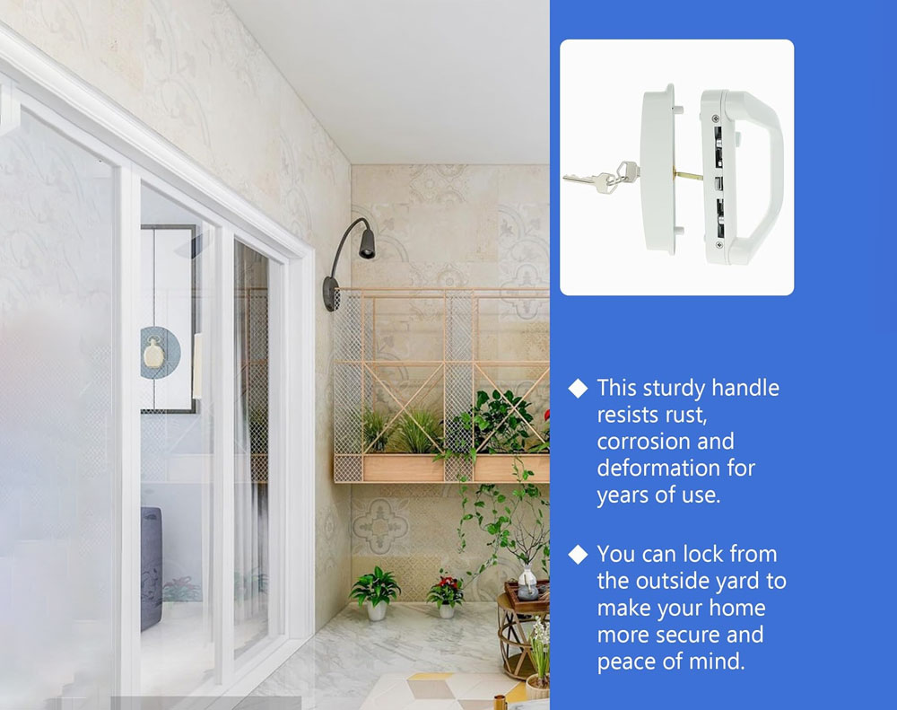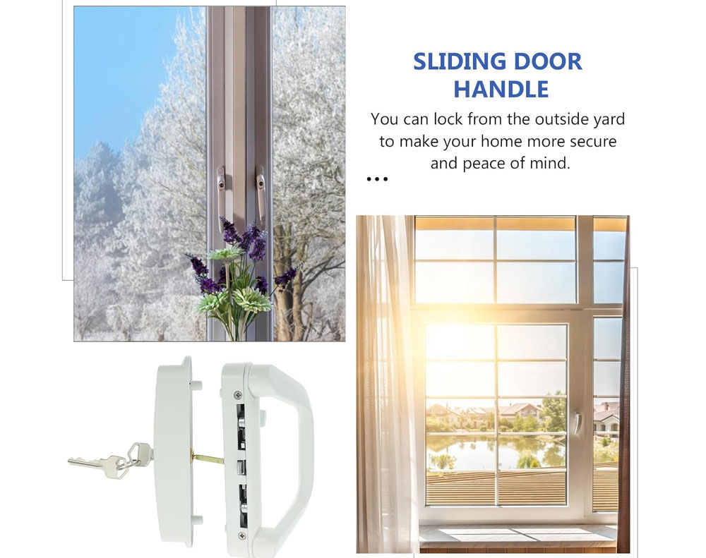 Sliding Glass Patio Door Lock Handle Set with Key White Zinc Alloy Security Entrance Door Hardware for Aluminum Timber Doors